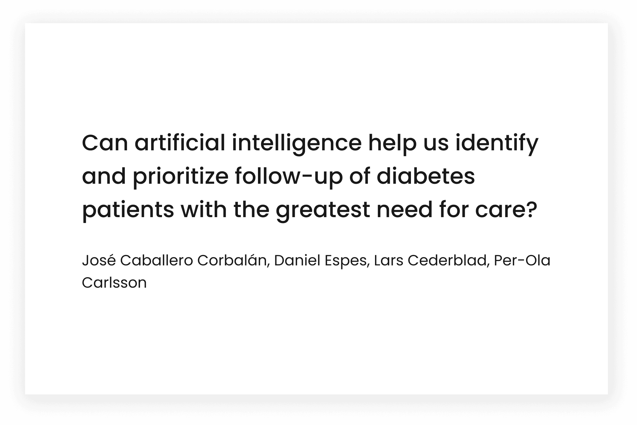 OneTwo Analytics possesses great knowledge in diabetes. Among the co-founders are the Professor of Medicine and Senior Consultant in diabetes, Per-Ola Carlsson (MD PhD) and the Associate Professor of Medicine and Senior Consultant, Daniel Espes (MD PhD), from Uppsala University. Per-Ola Carlsson is the Chief Medical Officer (CMO) and Daniel Espes is the Chief Scientific Officer (CSO) of OneTwo Analytics.